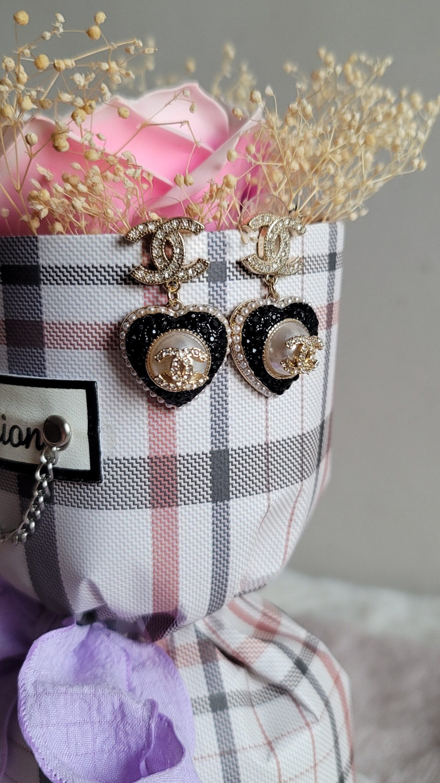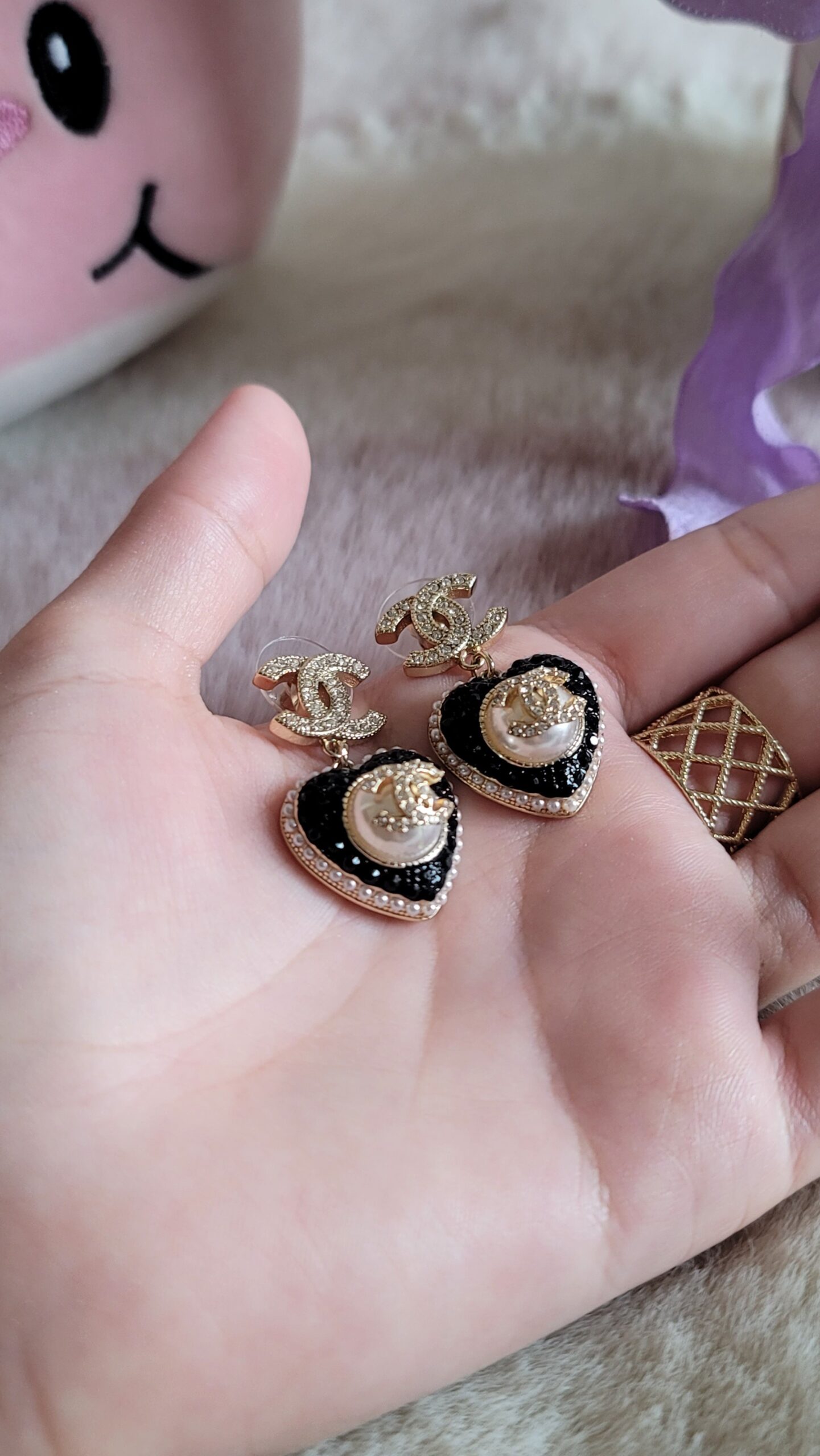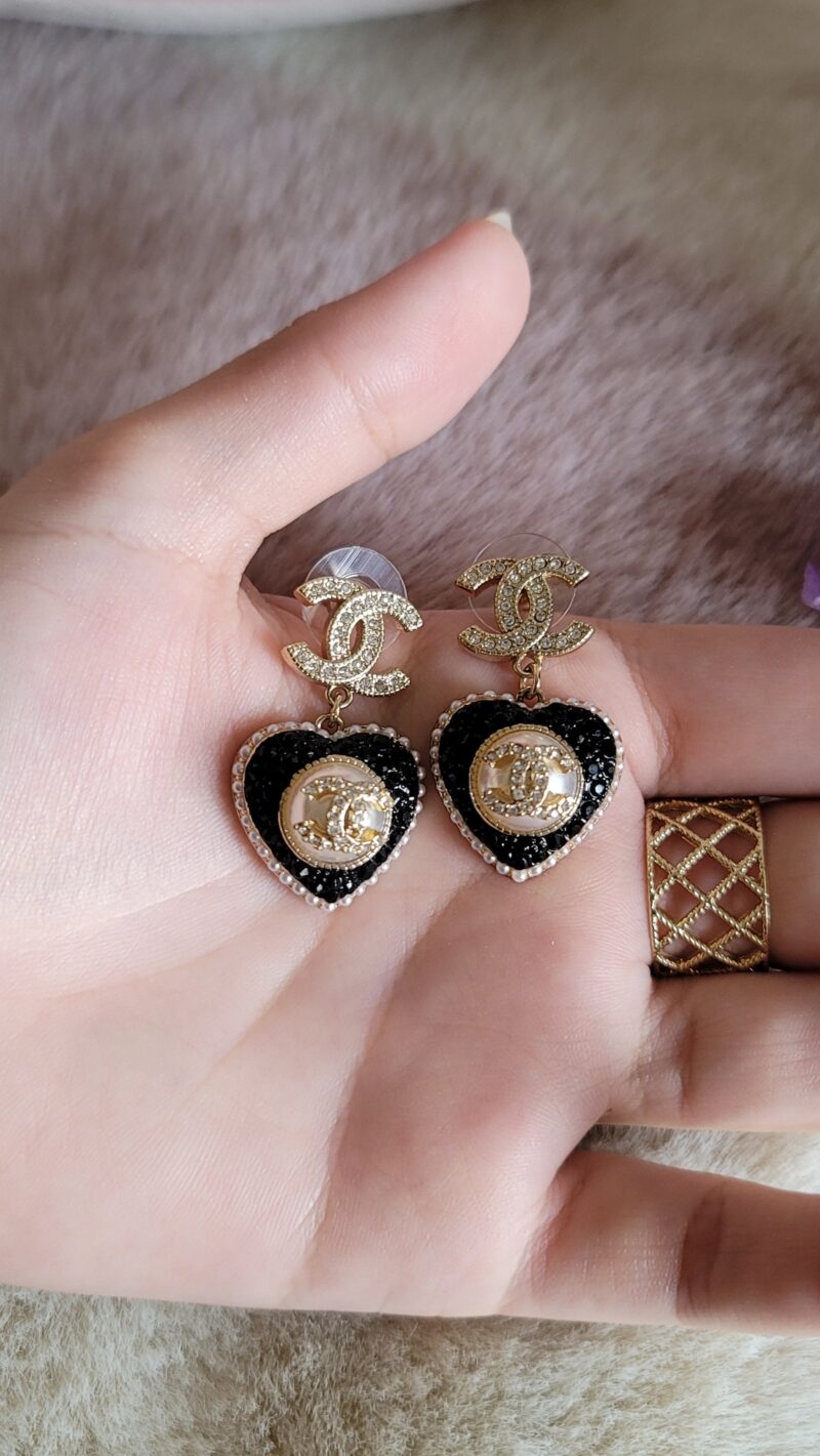 Chanel Black Heart Dangle Earrings